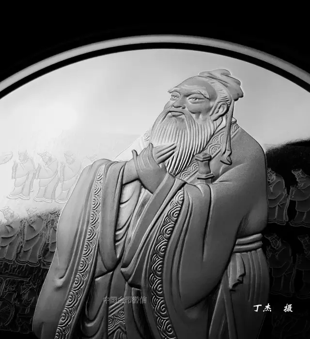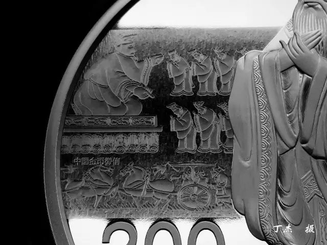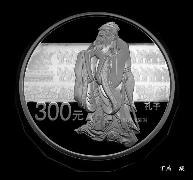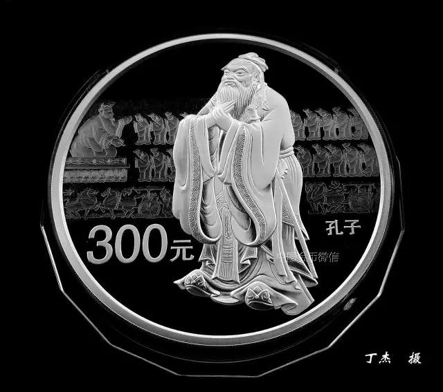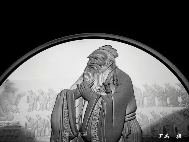 而且这枚1公斤银币的画面风格典雅素净,设计繁简得当,呈现出天然去雕饰的质朴情趣。在造型上,画面中心的儒者孔子形象凸显的是儒家思想爱人宽厚的“仁”,画面背景所装饰的杏坛讲学和周游列国画像石图,则强调的是儒家思想中遵守等级制度的“礼”,以人与像的形来诠释孔子思想的神。